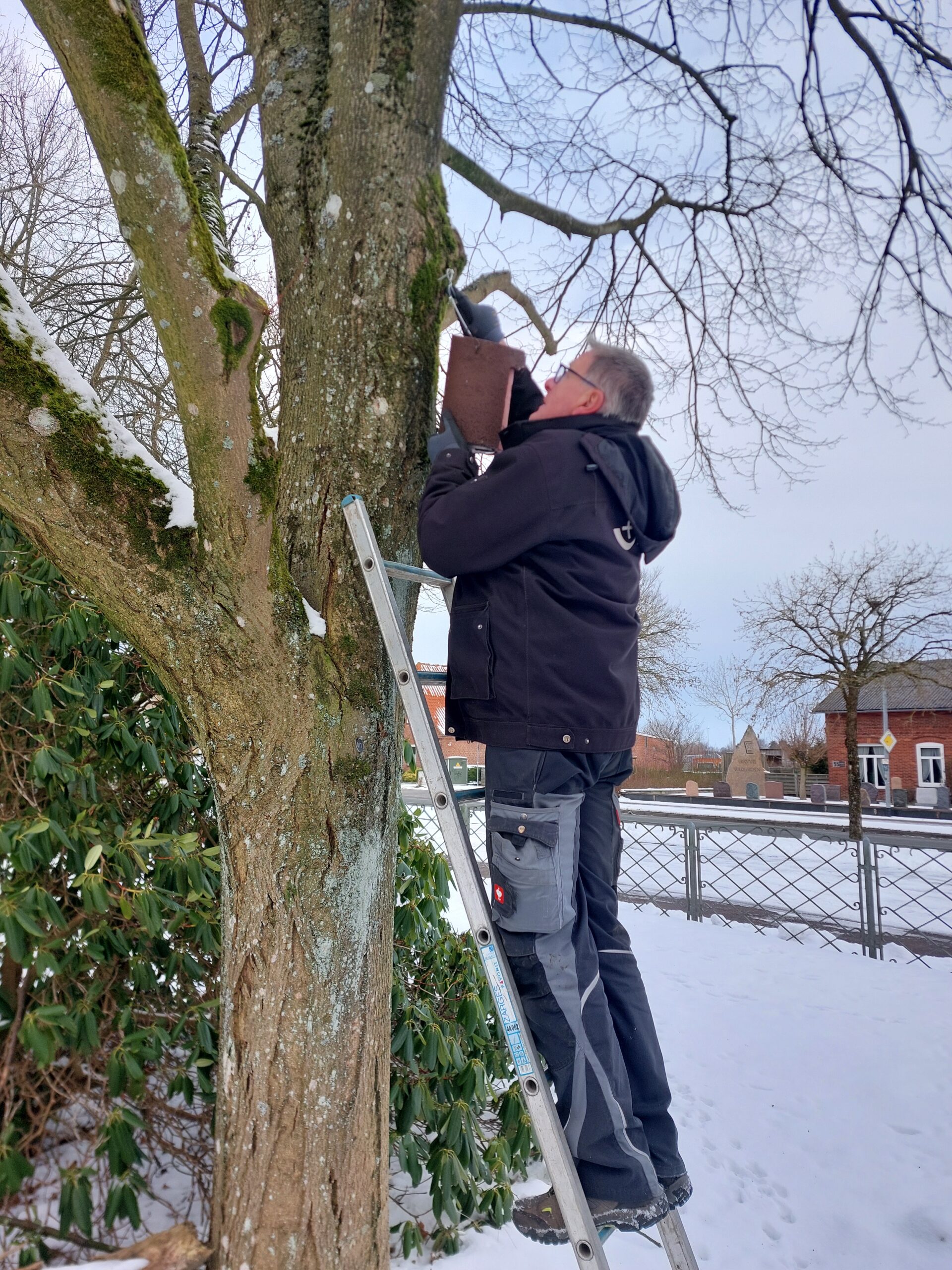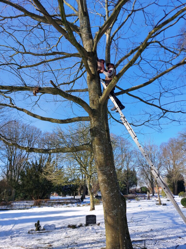 Einige Kästen wurden für die Friedhöfe in Aventoft und Horsbüll gespendet und ein großer Eulenkasten findet seinen Platz in Klixbüll. Der Großteil der Spenden ging jedoch an den Parkfriedhof Niebüll, wo nun die meisten Nistkästen angebracht werden.