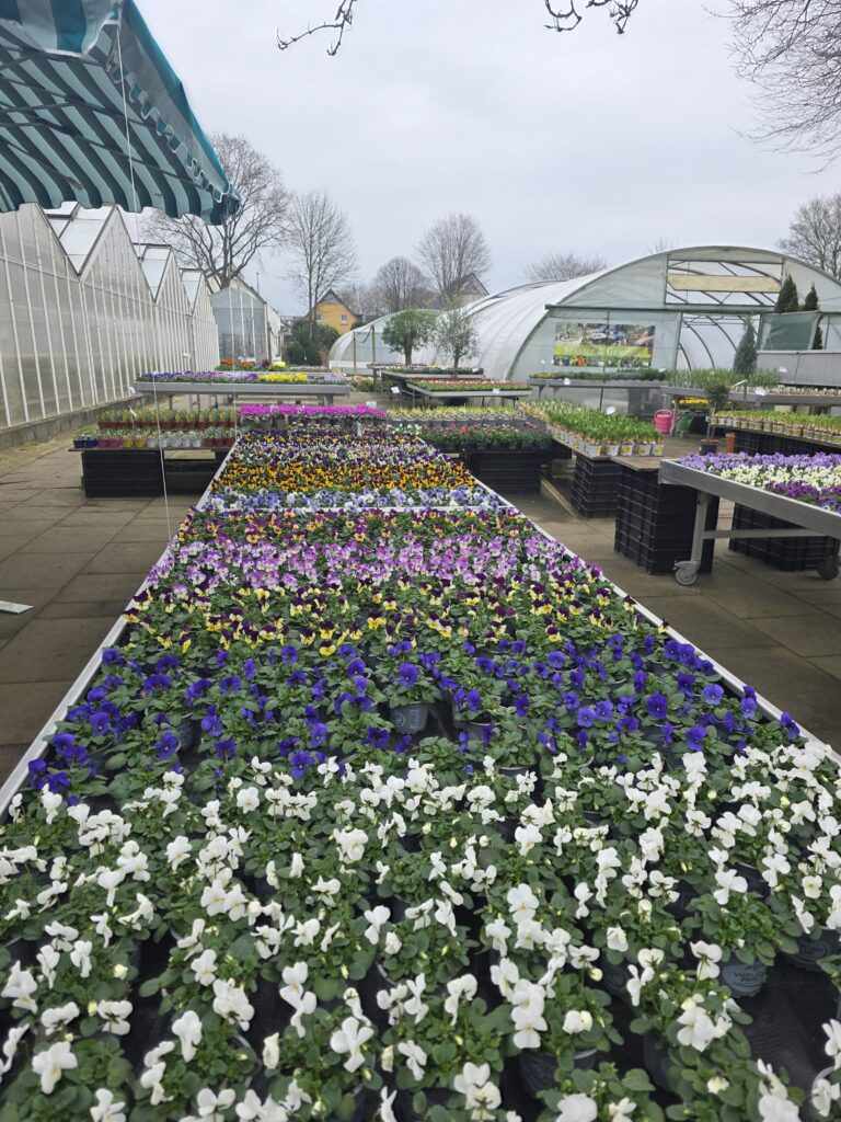 Es wartet eine bunte Auswahl an Hornveilchen, Primeln, Ampeln, Zwiebeln, Bellis und Pflanzschalen auf Sie. Für ein paar Pflanzen, die wir sonst bereits Anfang März anbieten, war der Winter leider zu lange zu kalt. Diese kommen daher mit ein wenig Verzögerung in den kommenden Wochen ins Sortiment.